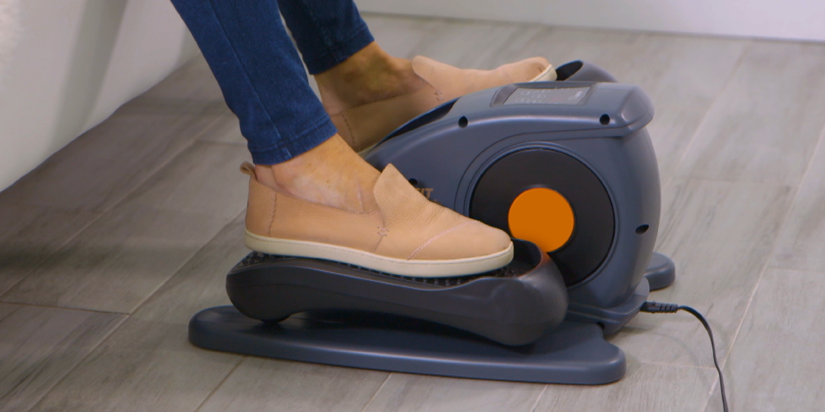 Sit Fit Elliptical es una elíptica compacta con pedales automáticos bidireccionales que activan tu cuerpo suavemente mientras estás sentado. Solo coloca los pies, ajusta desde el control remoto y deja que el movimiento fluido y silencioso fortalezca tus músculos, mejore tu circulación y te mantenga activo sin esfuerzo.